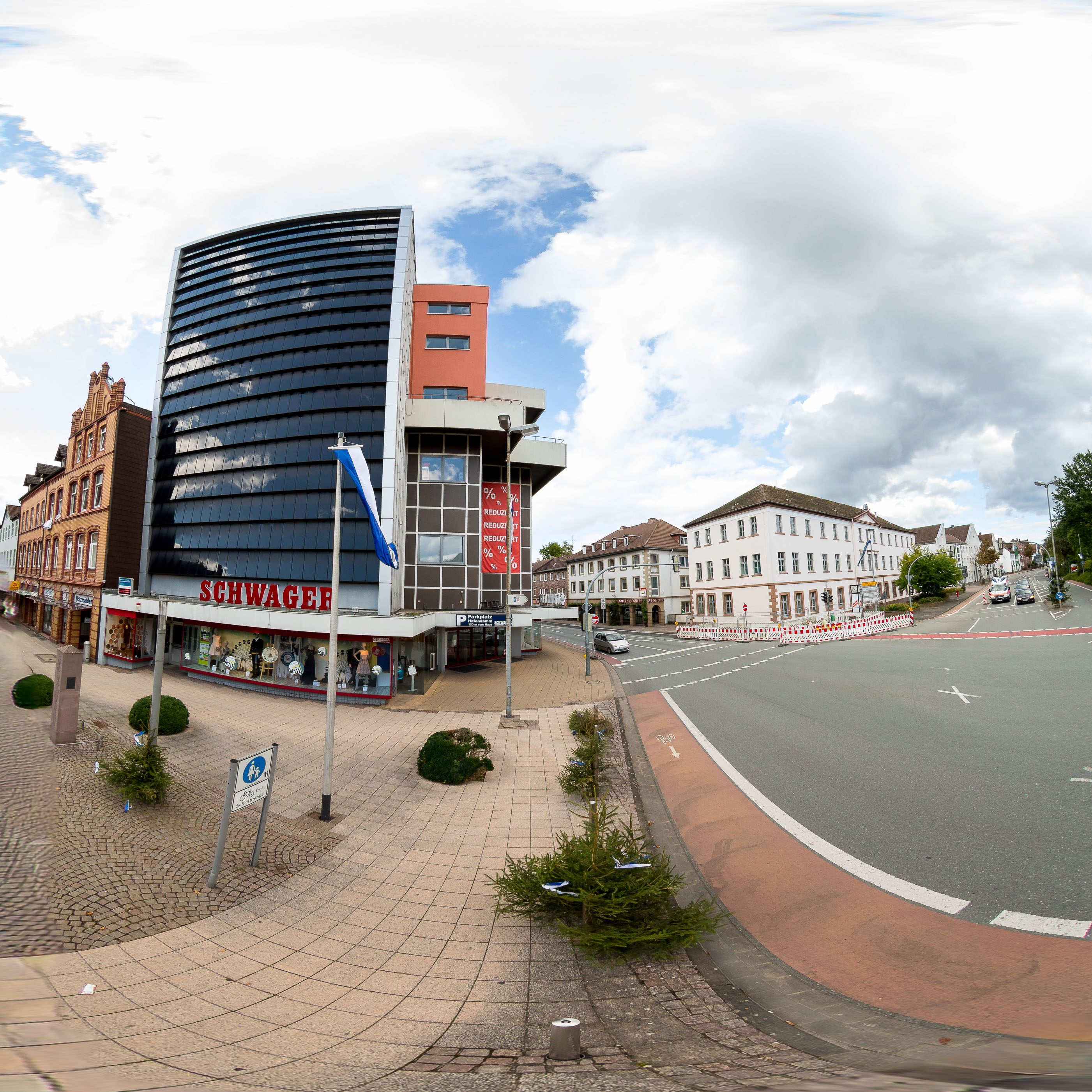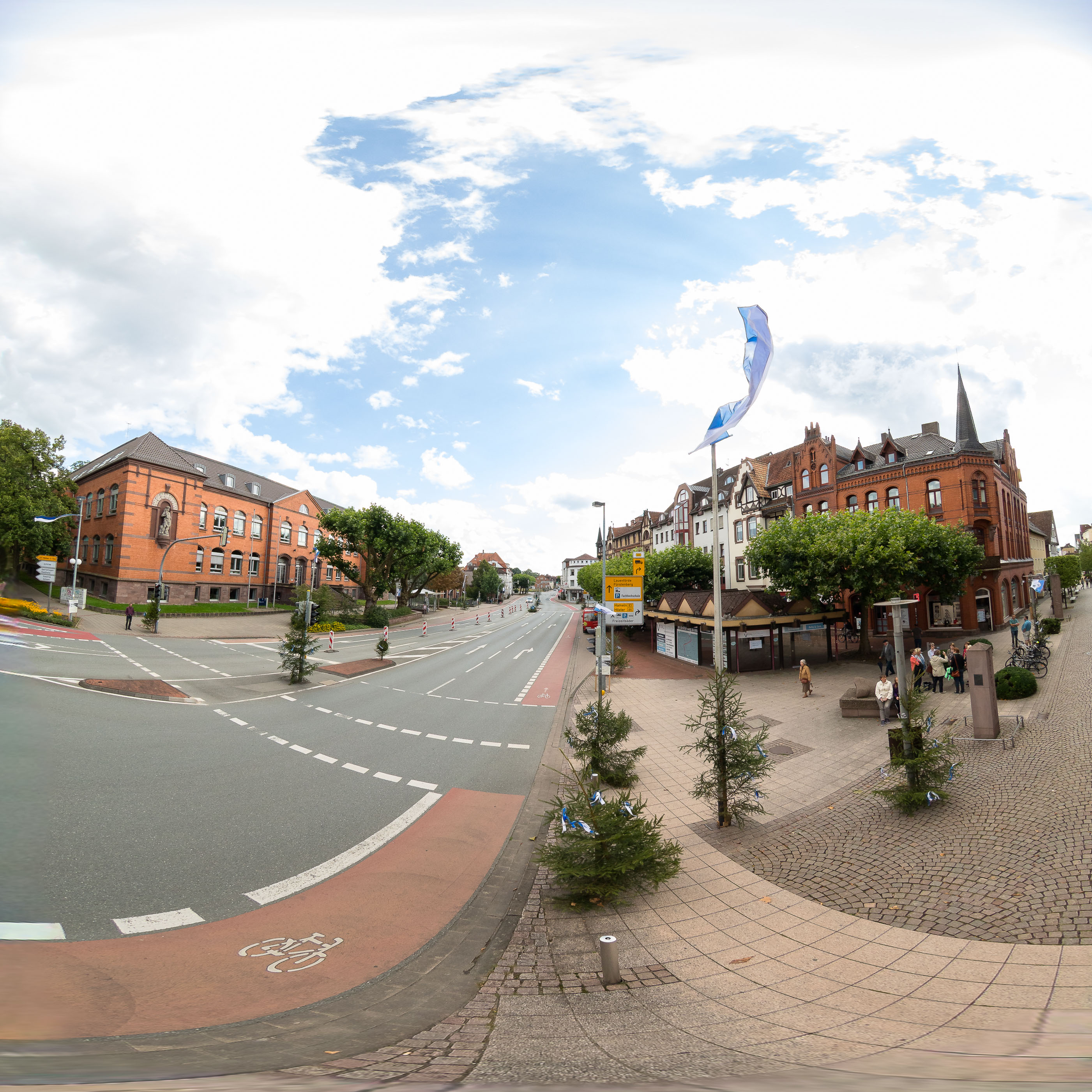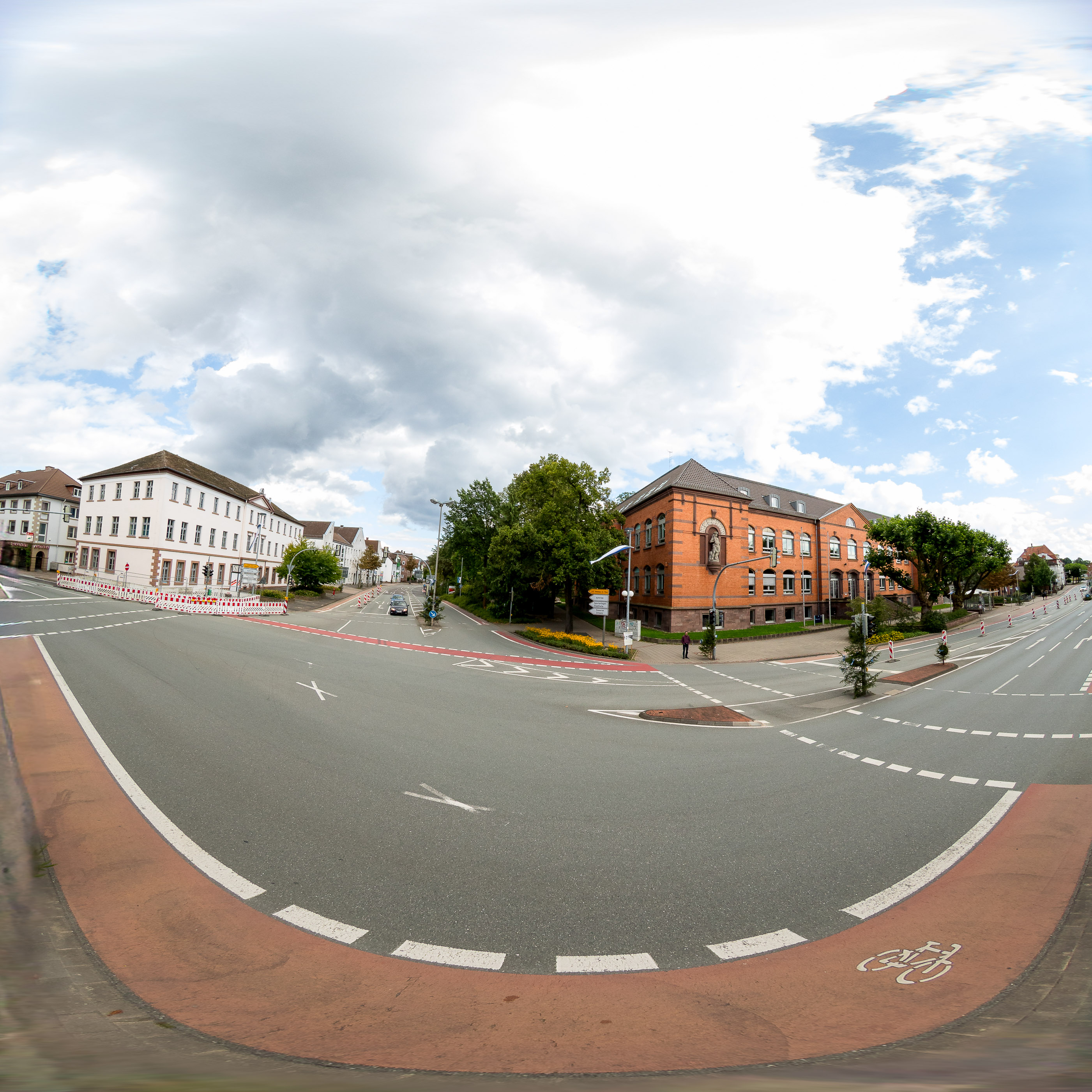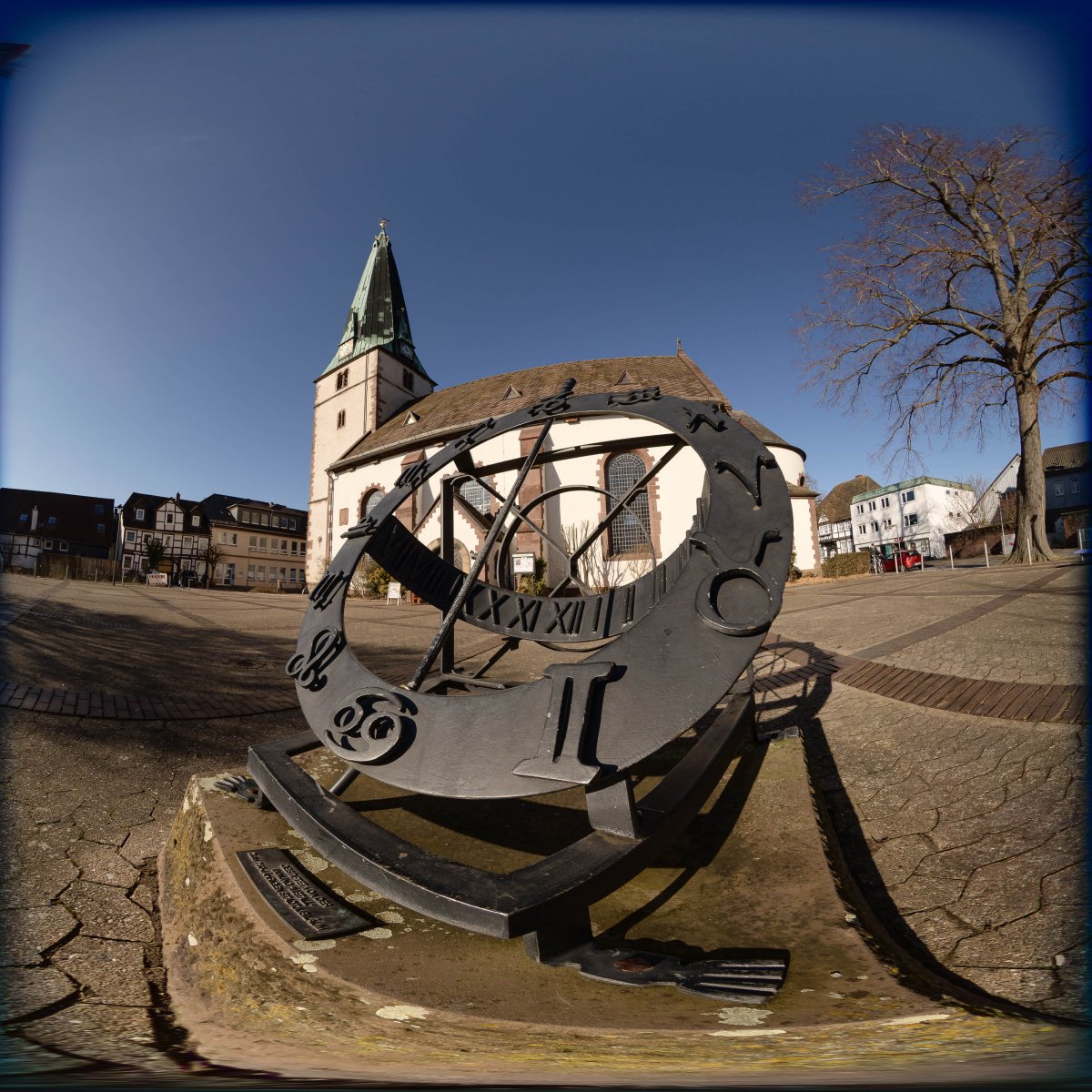 Wenn ein kreisförmiges Fisheye-Bild (das eine komplette Halbkugel, also 180°, abbildet) per Software in eine äquirektanguläre Projektion (Equirectangular) streckst wird, handelt es sich um ein 2D-Mapping eines hemisphärischen Panoramas.